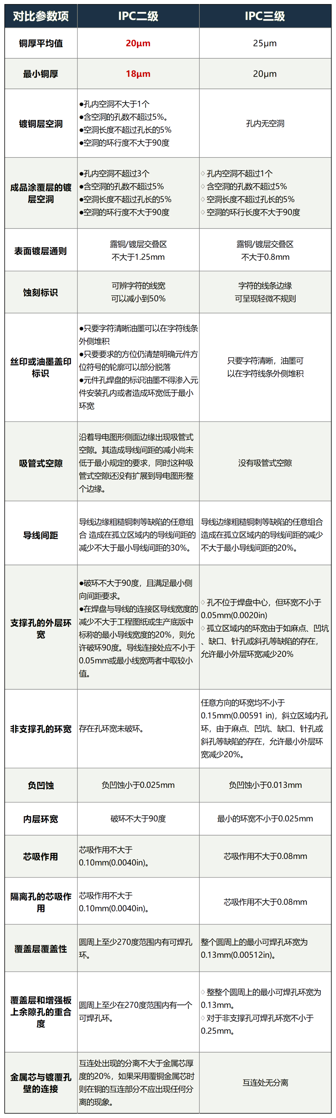 IPC(Institute for Printed Circuits,美国电子工业互连协会)是全球电子组装和PCB制造行业最具权威的标准组织之一。其制定的IPC-A-600《可接受性标准》和IPC-6012《刚性印制板性能规范》被广泛应用于电子制造行业,是衡量PCB质量的重要依据。IPC将产品的质量等级分为三个等级: