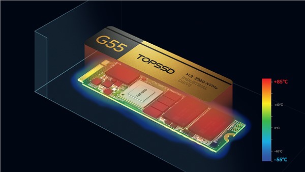 通过高效的动态热能管理机制,天硕工业级固态硬盘可以确保设备在安全温度范围内稳定运行,避免过热问题导致数据和固件毁损。此外,天硕G55 Pro M.2 NVMe 工业级固态硬盘还支持冷启动预热模式,利用器件空载运行的热耗散效应,使-55℃以下时的关键元器件快速达到可工作状态。