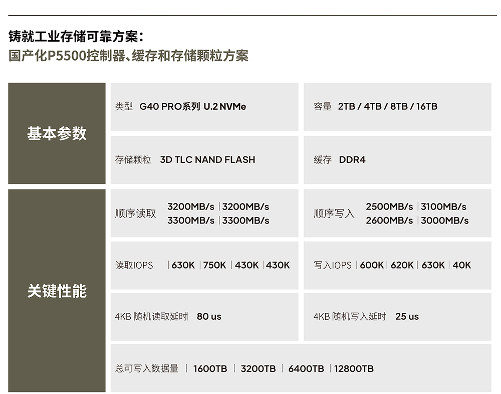 G40系列工业级SSD具备卓越的宽温性能,能在-40℃至85℃的工作温度范围内保持稳定的运行,确保数据读写速度和系统可靠性不受环境温度变化的影响,适用于严苛的工业自动化、交通运输、航空航天及军事等应用场景,是高可靠性、高安全性、高耐用性的存储解决方案。